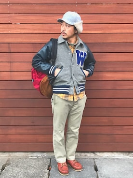 スタジャン グレー系 を使った 赤 のメンズ人気ファッションコーディネート Wear