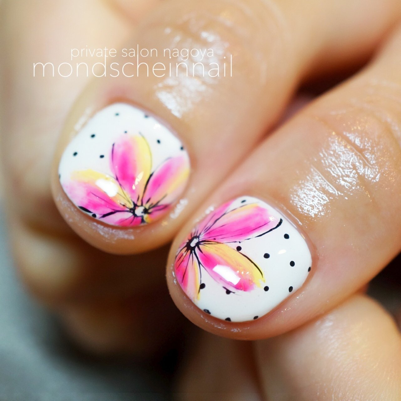 オールシーズン ワンカラー フラワー ホワイト ピンク 内藤ひかり モントシャインネイルのネイルデザイン No ネイルブック
